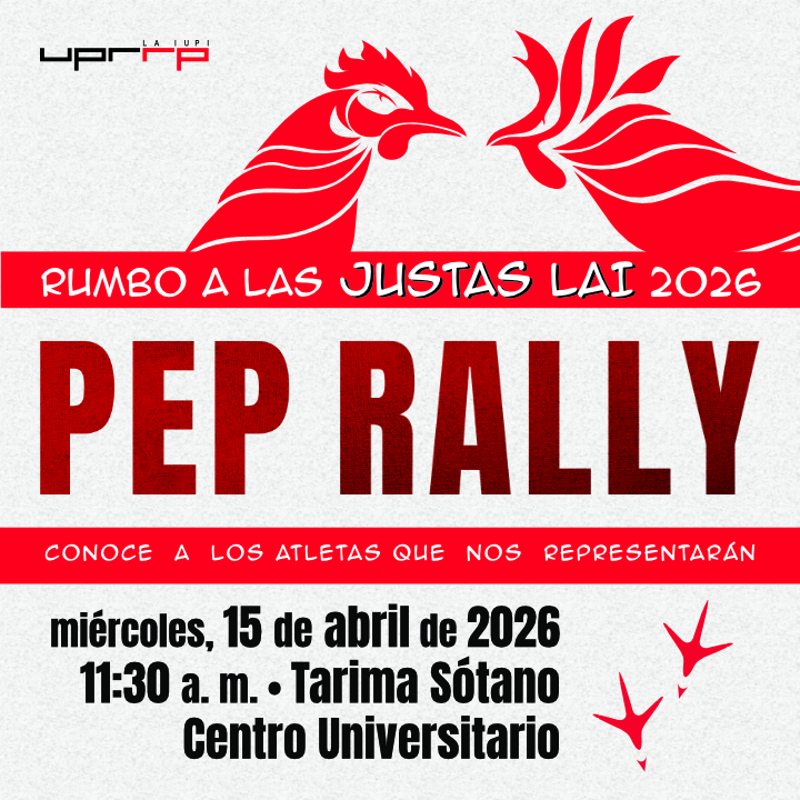 Con el propósito de celebrar y dar a conocer los estudiantes atletas que participarán en las competencias deportivas de la Liga Atlética Interuniversitaria (LAI), la Universidad de Puerto Rico, Recinto de Río Piedras celebrará su Pep Rally el miércoles, 15 de abril en la Tarima ubicada en el Sótano del Centro Universitario, a partir de las 11:30 a.m.
